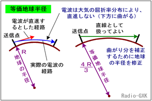 次の記述は、等価地球半径について述べたものである。[ ]内に入れるべき字句を下の番号から選べ。