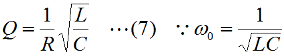 直列共振回路のQをR、L、Cのみで表せば、(7)式になります |