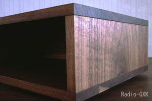 戸山家具にお願いしていた共鳴箱の製品版1号機(「本番機」という呼び方は、何が「本番」なのか分からないので、やめました)が、出来上がりました。待ちきれなくて、納期より数日前お電話したら、「まだです」と言われてしまいました。(出来上がったのは10月に入ってからですが、写真や録音設定の都合で掲載が遅くなりました。) 本当は、(研究という意味で)職人の方にも音の違いを体感していただきたくて、平日の昼間にお邪魔しようと思っていたのですが、休みが取れなかったため、土曜のお店が空いている閉店間際に伺いました。 「もう出来てますから、こちらへ」と、いつも応対して下さるWさんに案内され、\1,000万のウオールナットの一枚板でできたテーブルのある社内の会議室に通されます。